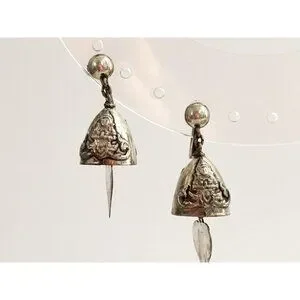 Siam sterling silver signed screw back etched earrings. One bell per earring with a heart shaped ringer. I have a matching bracelet if still available, see link below: