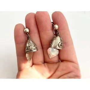 Siam Sterling Silver Vintage Screw Back Bells Hearts Charm Earrings
