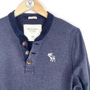 Abercrombie & Fitch Y2K Striped Henley Boys XXL Blue Long Sleeve Muscle Shirt