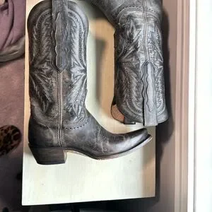 Stylish gray cowboy boots. Intricate stitching design. Perfect for any occasion.