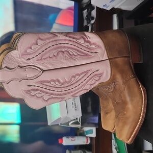 Stylish brown and pink western boots perfect for any occasion. These boots offer comfort and a unique design, making them a must-have for your wardrobe.
