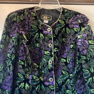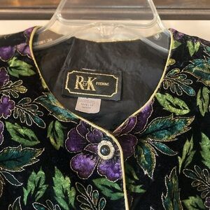 Size 10/12 R&K Evening Black and Purple Floral Jacket with Gold Shimmer Details