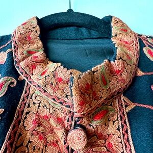 Vintage Sophisticated Mandarin Collar Wool Hand Embroidered Sherwani