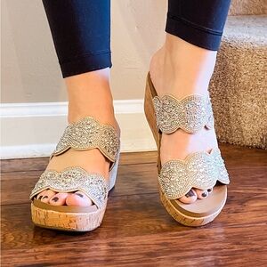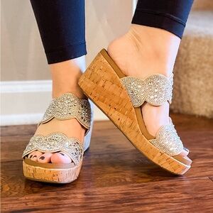 Last 1! corkys make a toast wedge sandal clear rhinestone embellishments size 9