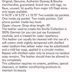 Gorgeous Dooney & Bourke Seville Callie shoulder bag in “Sand” - a beautiful taupe gray pebbled leather with honey gold zipper accents and bright red leather interior. Such fun color combo that really goes with so much. So spacious with tons of great pockets and interior is so easy to keep clean bc it’s not fabric. This was a favorite but time to move on.