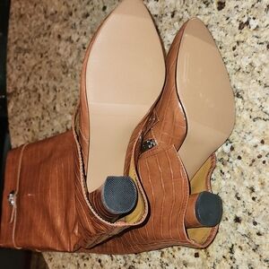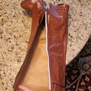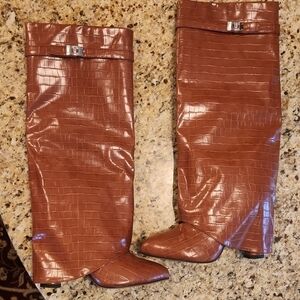 NEW!! Croc-Embossed Knee-High Heeled Boots. Brownish color