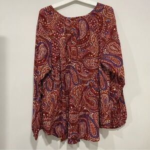 Women's Long Sleeve V-Neck Tunic Top - Knox Rose™ Red Paisley Size XXL