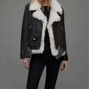 AllSaints Luna 4 In 1 Shearling Vest Leather Biker Jacket, Size US 6