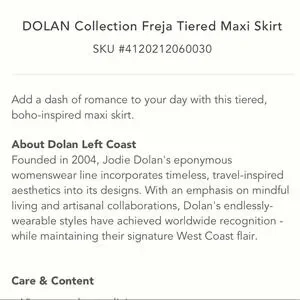 Size Large NWOT Anthropologie DOLAN Freja Tiered Maxi Skirt. Elastic waist, pockets. Waist flat 19”, Length 38”.