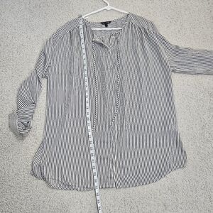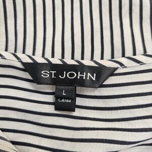 Large St. John Silk Blend Blouse Black White Striped Vertical Button Front Tunic