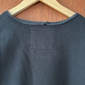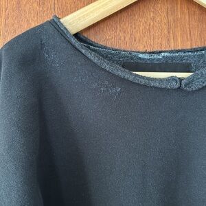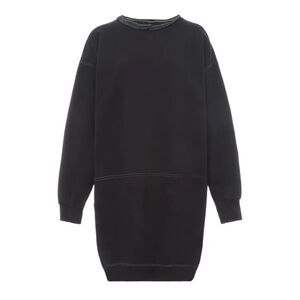 A knee-length dress version of a favorite, vintage-inspired RC sweatshirt, with wide raw-edge neckline, drop shoulders, voluminous sleeves, and unique distressing throughout.