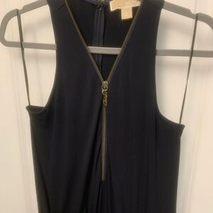 Elegant navy Michael Kors jumpsuit with pockets. Sleeveless design. Perfect for any occasion. Polyester and spandex.