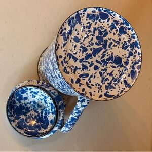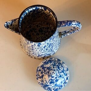 Blue and White Graniteware Enamel Stovetop Camp Fire Coffee Chocolate Pot 8”