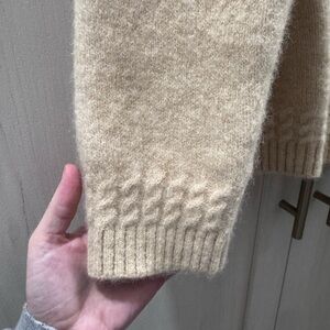 This sweater is extremely soft and beautiful. The color in the stock photos is the accurate color of the sweater. It’s meant to be a little oversized. Was repurchased in a smaller size and no longer need this one.