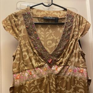 Sleeveless dress by Arden, pure silk. sequined neckline and tie size 8. Trying to show beaded tassel in tie in first pic.