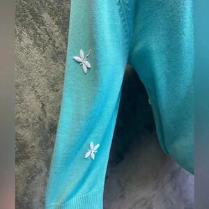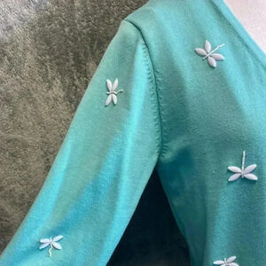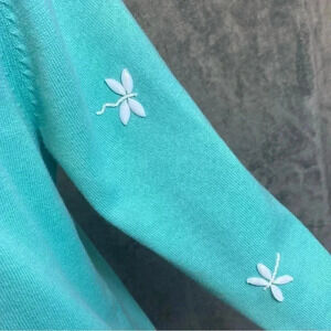 Light green Quacker Factory Dragonfly Beaded Cardigan with built in shell women’s size M
