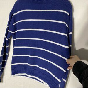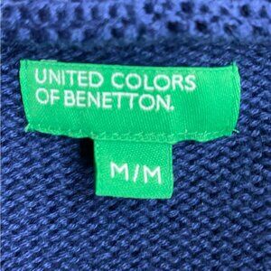 United Colors Of Benetton Navy White Striped Cotton 1/2 Zip Turtleneck Sweater M