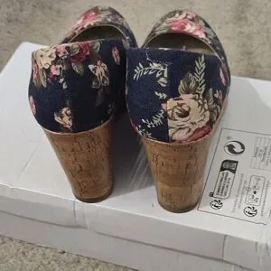 Pre-owned Women Floral Wedges. Size 8 and 4 inch Wedge.