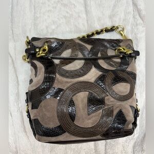 COACH Brown leather suede handbag purse with gold chain strap, style 14339