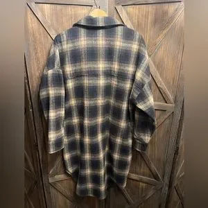Long Plaid Button Down Shacket