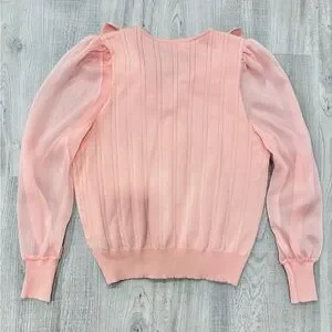 NWOT Pink V-Neck Bib Collar Sweater with Pearl Buttons Sheer Sleeves Size Small