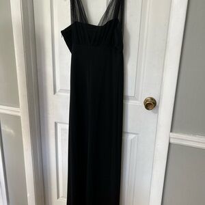 This beautiful formal dress by Betsy & Adam is perfect for any special occasion. With its classic black color and elegant sleeveless design, it will make you look stunning and confident. Made from high-quality polyester material, this dress is both comfortable and durable. It is a regular size 12.