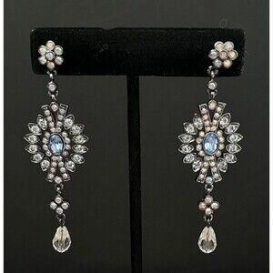 Vtg Joan Rivers Classics Collection Rhinestone Dangle Drop Pierced Earrings