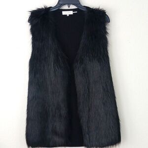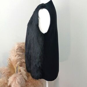 Calvin Klin boho chic black faux fur and knit vest sz medium