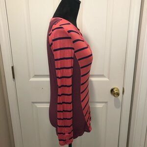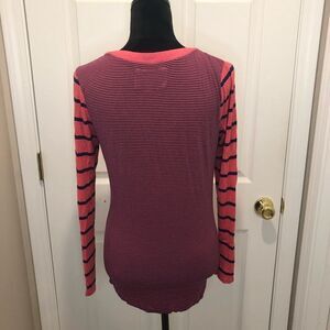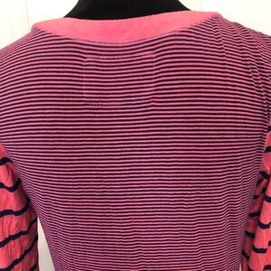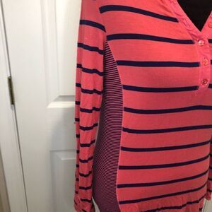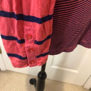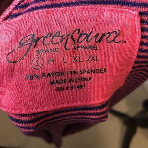 Green Source long sleeve pink blue stripe shirt. Button closure in front and buttons on cuff. Size small, pit to pit 16in, length 26in, sleeve 23in. 💙⭐️💛