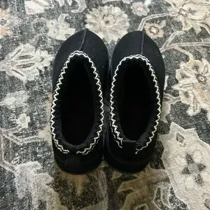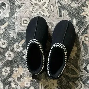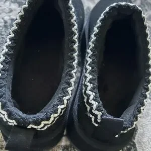 Brand new, never worn. Black- furry on the inside platform slippers. Size 7 women’s. Very cute and comfy, but did not like them on me.