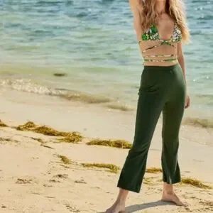 NWT Aerie Ribbed Ankle Flare Pants Green Size Large