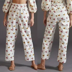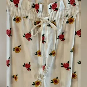 Size Small NWOT FARM Rio Mixed Cross Stitch Flowers Embroidered Pants.