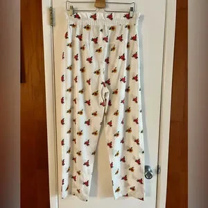 100% cotton trousers with all over adorable mixed cross stitched / embroidered flowers.