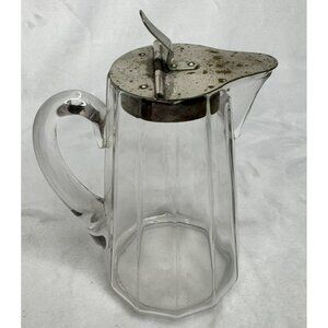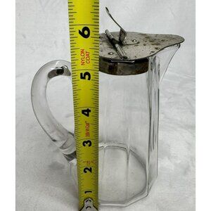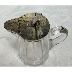 Vintage Glass Syrup Pitcher or Creamer With Metal Hinged Lid & Handle