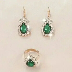 Women's 4-Piece Green Drip Shaped Rhinestones Jewelry Set - Emerald Like