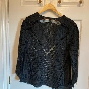 Limited Edition Zara Black Knit Heavy crochet Blazer Cardigan Boho Black Small