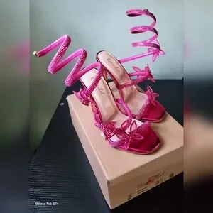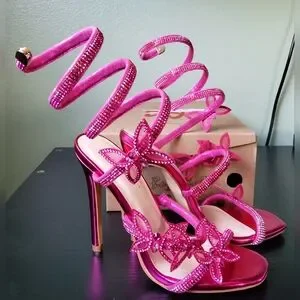 like new condition, worn once, sexy fuchsia color, size 5.5 heel height 4.5". I will ship the same or the next day except for holidays.