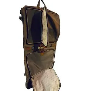 Crafted with a durable khaki canvas exterior, leather accents, and Dior-branded lining, this garment bag is both stylish and practical. It features multiple compartments for organized storage, sturdy handles for easy transport, and premium hardware details that reflect Dior’s signature quality.