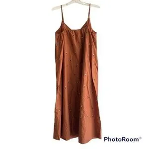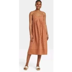 Women’s Floral Embroidered V-Neck Midi Dress Universal Thread Rust Orange Size XS