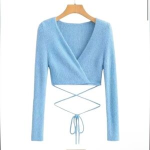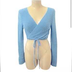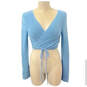 🚫SOLD🚫 NWOT Baby blue fuzzy wrap sweater sz L