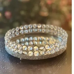 Mirrored Vanity Tray with Crystals- 8 1/2”
