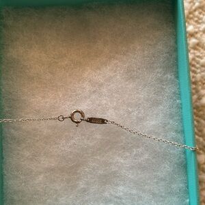 Tiffany pearl necklace with box and bag. The plate near the clasp on the necklace says “Tiffany & Co” on one side and “AG925” on the other side. 16” silver chain
