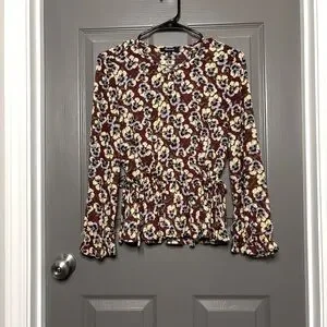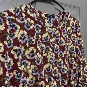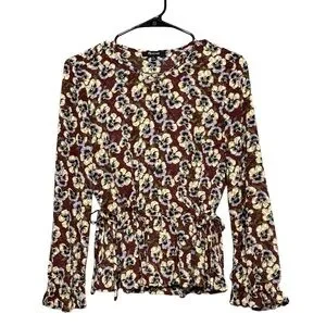 Madewell Drawstring Ruffle-Hem Top Viola Floral Pansy Print S