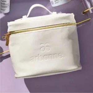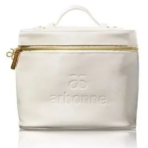 Arbonne AgeWell Accessory Bag zip up White Gold vegan leather NEW