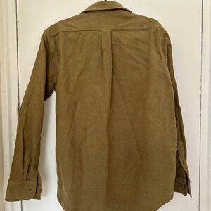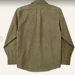 Like new, worn once. A midweight, wind-resistant, sueded Moleskin shirt by Filson, color "Lovat".