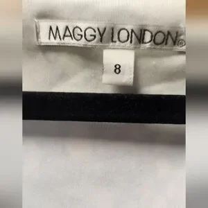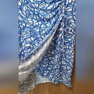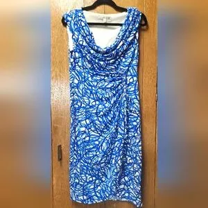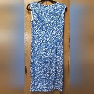Maggy London Women’s Faux Wrap V Neck sleeveless Dress White Blue Size 8 like new