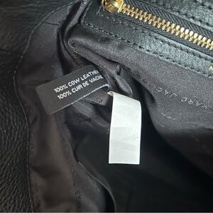 This bag has a top carry handle with 7" drop, detachable adjustable 20" crossbody strap - convertible style, brand logo plate, magnetic top closure, gold tone hardware detail, one zip and two open pockets.