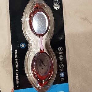 Speedo women's competitive vanquisher 2.0 mirrored goggles. Widest panoramic lens UV protection with anti-fog cushion silicone seals for interchangeable nose pieces. NWT