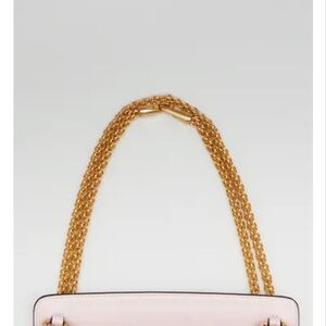 Gold hardware crossbody bag with gold chain strap. New condition with one flaw. See pic for front bottom left side on pic of blade cut, sold as is. Pls ask if you have any questions.