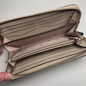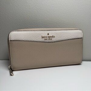 Kate Spade Large Continental Zip Wallet in Warm Beige and cream color block pattern. A great everyday wallet that can hold everything you need!